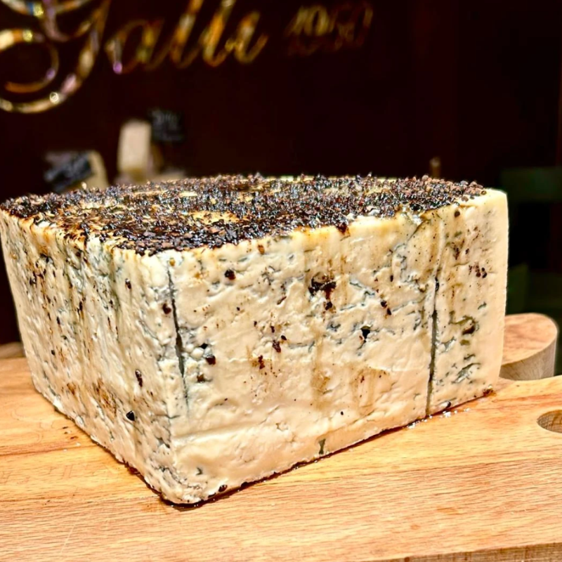 Erborinato veneto di latte vaccino, affinato alla birra ambrata e al malto d'orzo. Strepitoso l'abbinamento con la nostra confettura di cipolle rosse e arance.