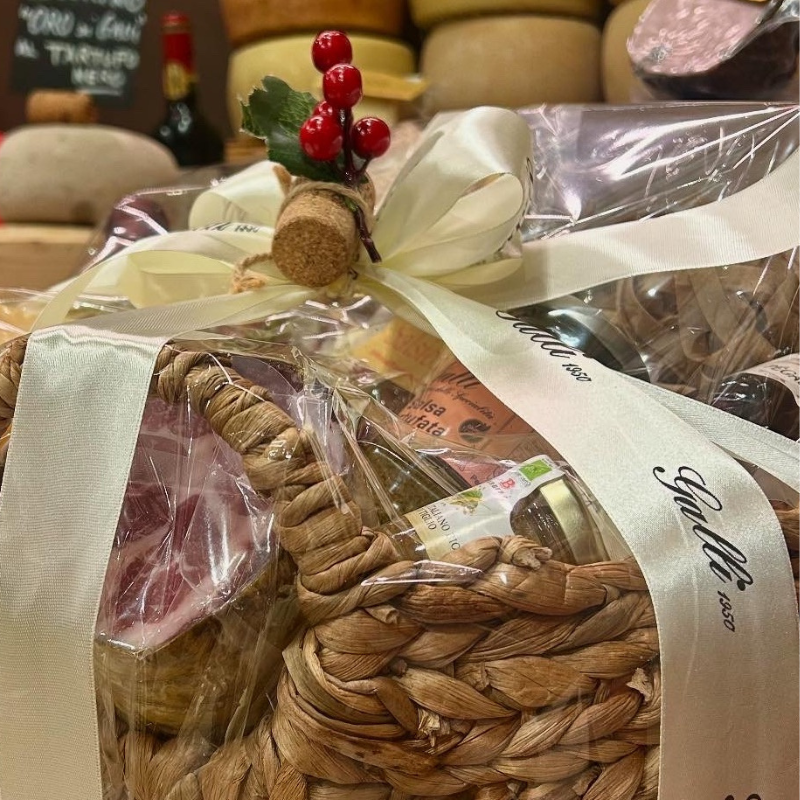 Salame Felino (500 g), natural artisanal Lambrusco wine (75 cl), Galli selection sun-dried tomatoes, Galli selection olive spread, and flavored crackers